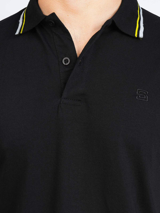 Black Contrast Tipping Half Sleeves Cotton Jersey Polo T-Shirt (ss-04PS)