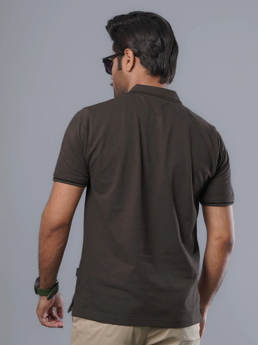Dark Brown Classic Half Sleeves Cotton Polo T-Shirt (ss-02PS)