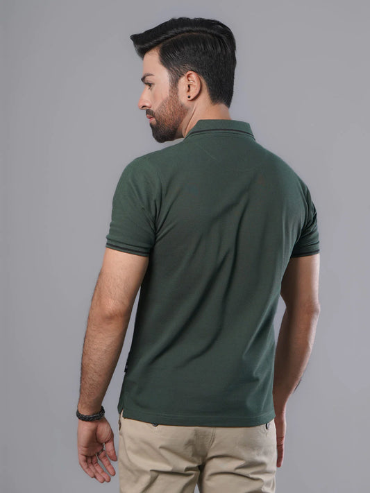 Dark Green Classic Half Sleeves Cotton Polo T-Shirt (ss-03PS)
