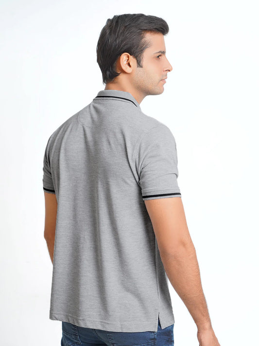 Light Grey Classic Half Sleeves Cotton Polo T-Shirt (ss-01PS)